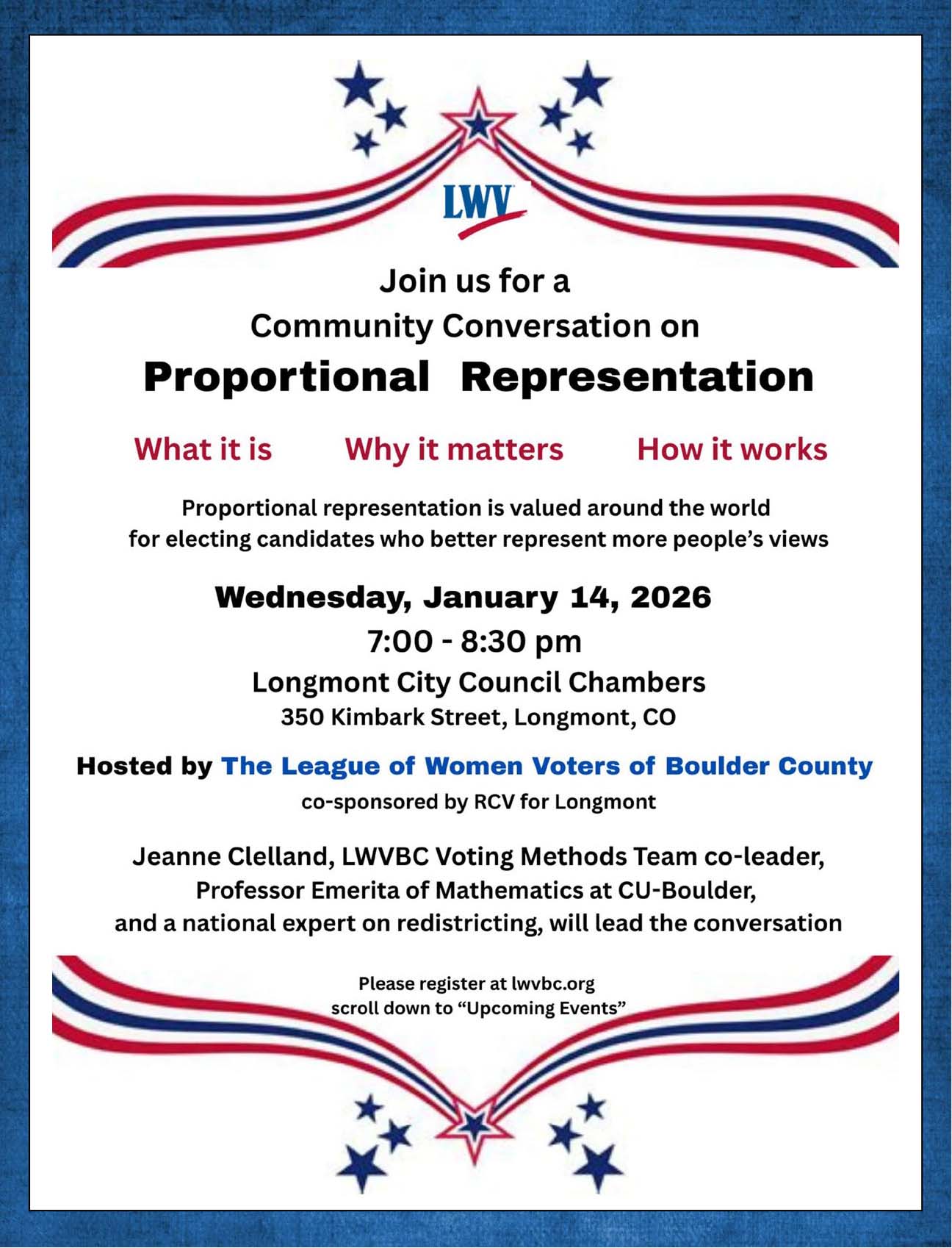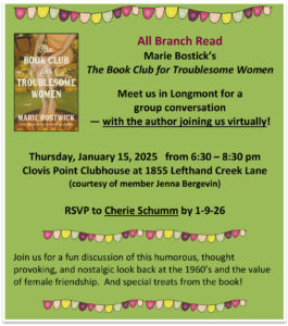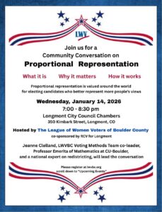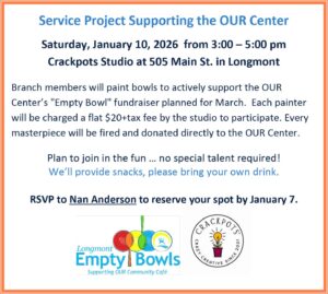 Wednesday, Jan. 22 and Feb. 26 … 9:30 AM Coffee & Conversation at Babettes Bakery, 2030 Ionosphere in Longmont